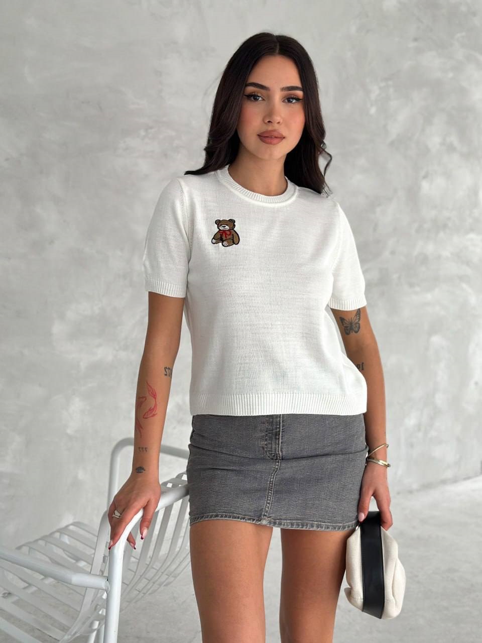 Головна » Магазин » ОДЕЖДА » ФУТБОЛКИ МАЙКИ » Базовая Футболка с коротним рукавом и мелким принтом мишки белый