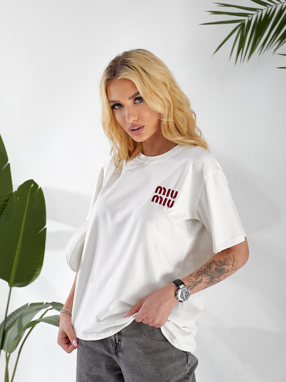 Футболка с вышивкой «MIU MIU» – твой образ с акцентом на стиль