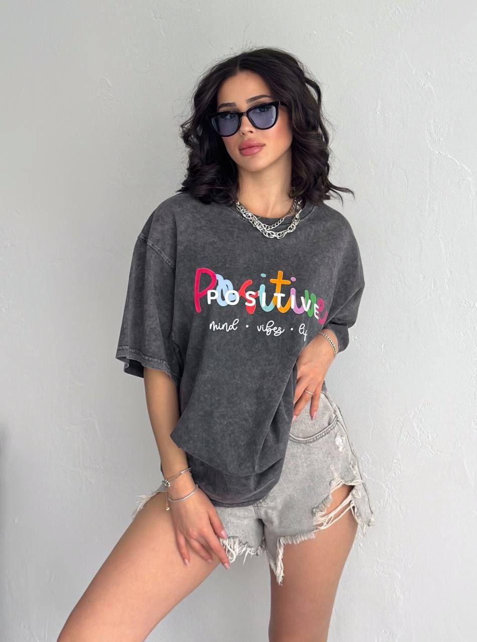 Базовая футболка свободного кроя с яркой надписью хлопок графит