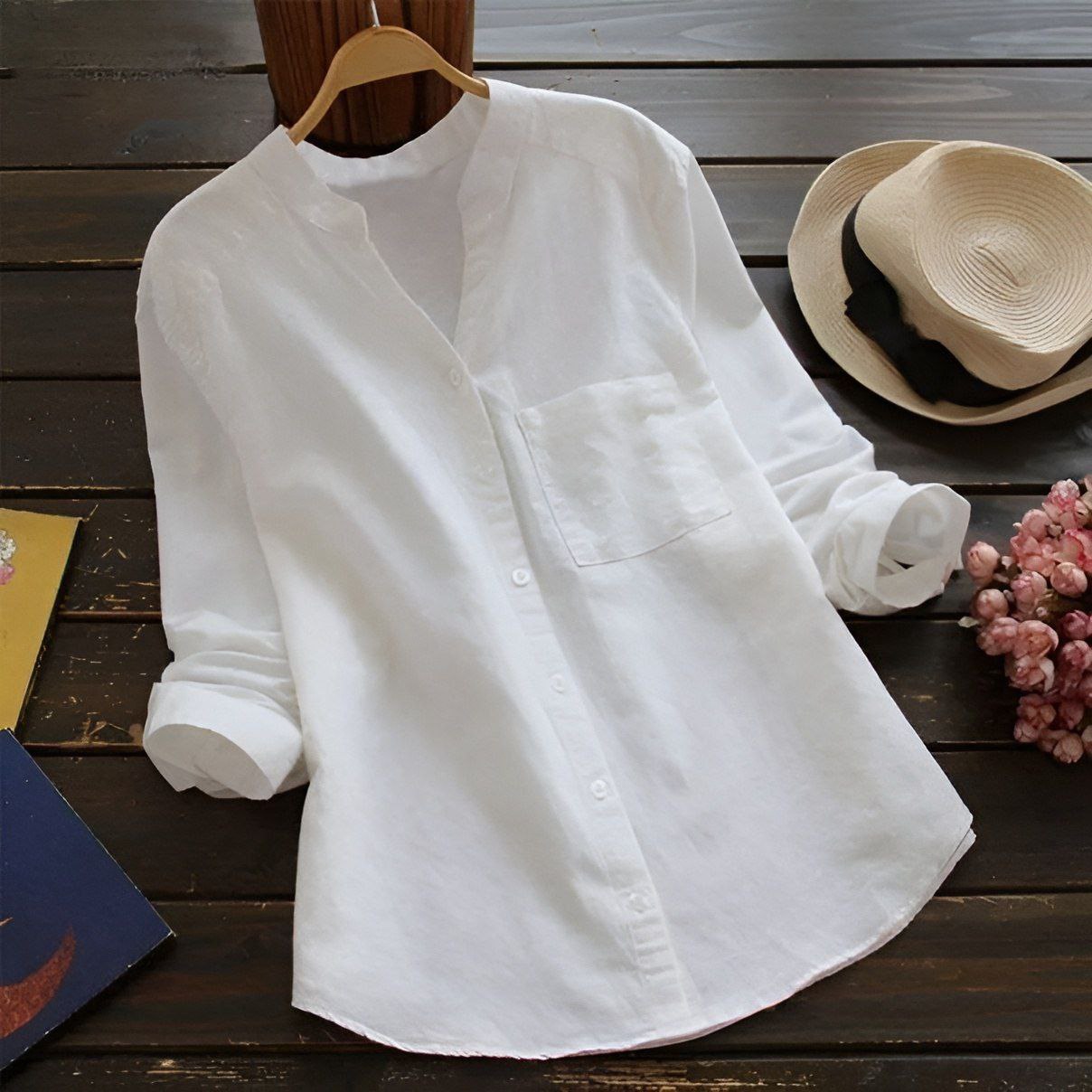 Девочки, вы только посмотрите на эту рубашку! Модель с длинным рукавом, лаконичным воротником-стойким и аккуратным карманом на груди.