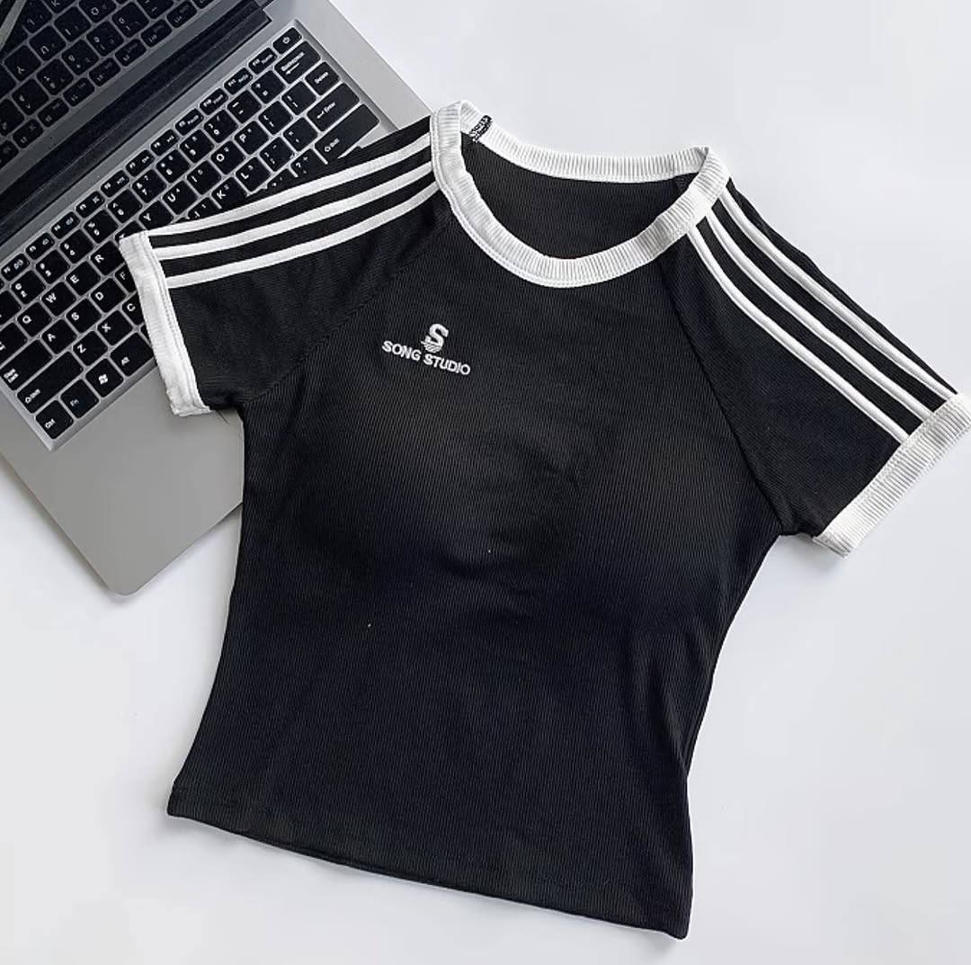 Базовая укороченная футболка с чашками и лампасом SONG STUDIO