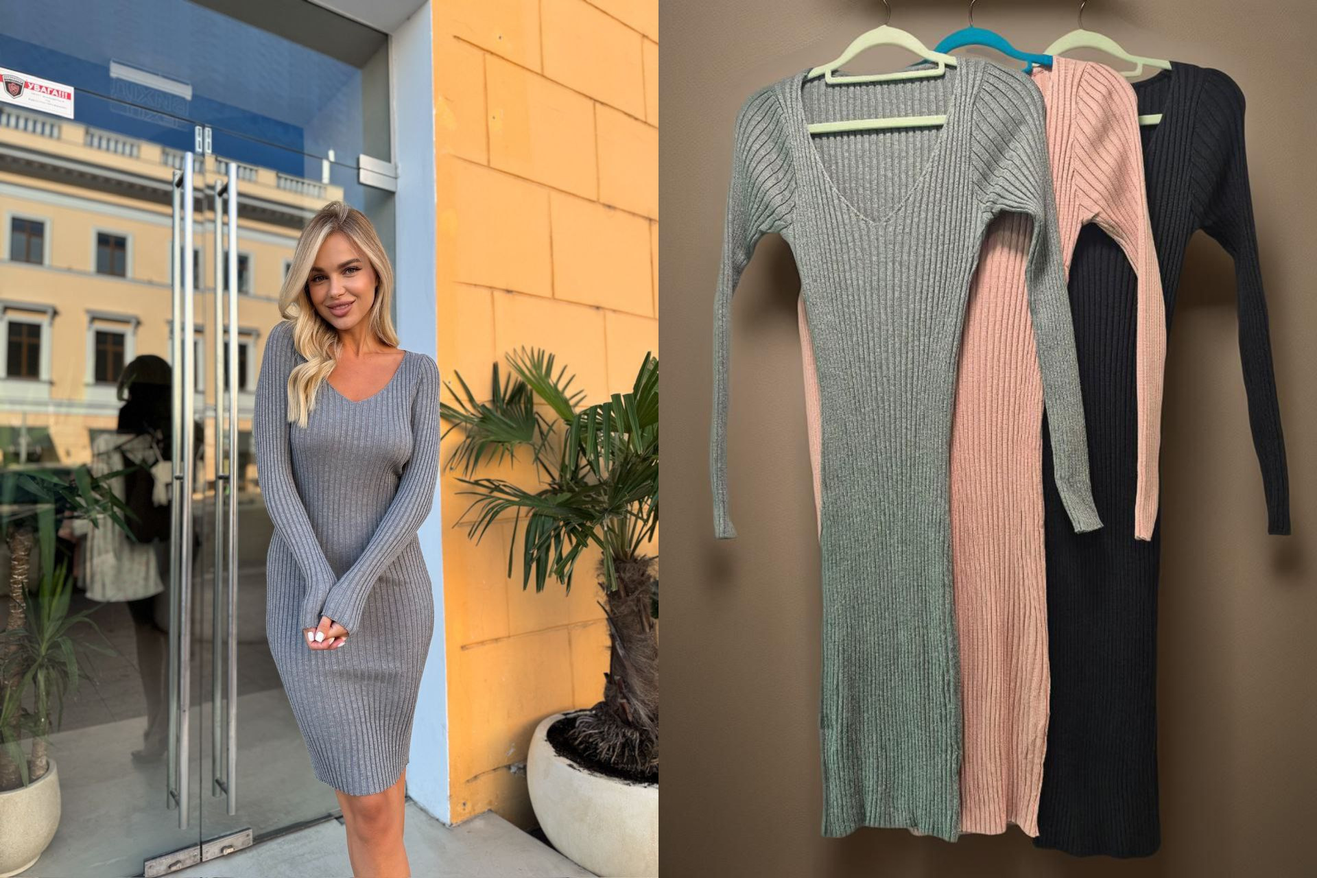 Базовое трикотажное Платье по фигуре принт резинка черный