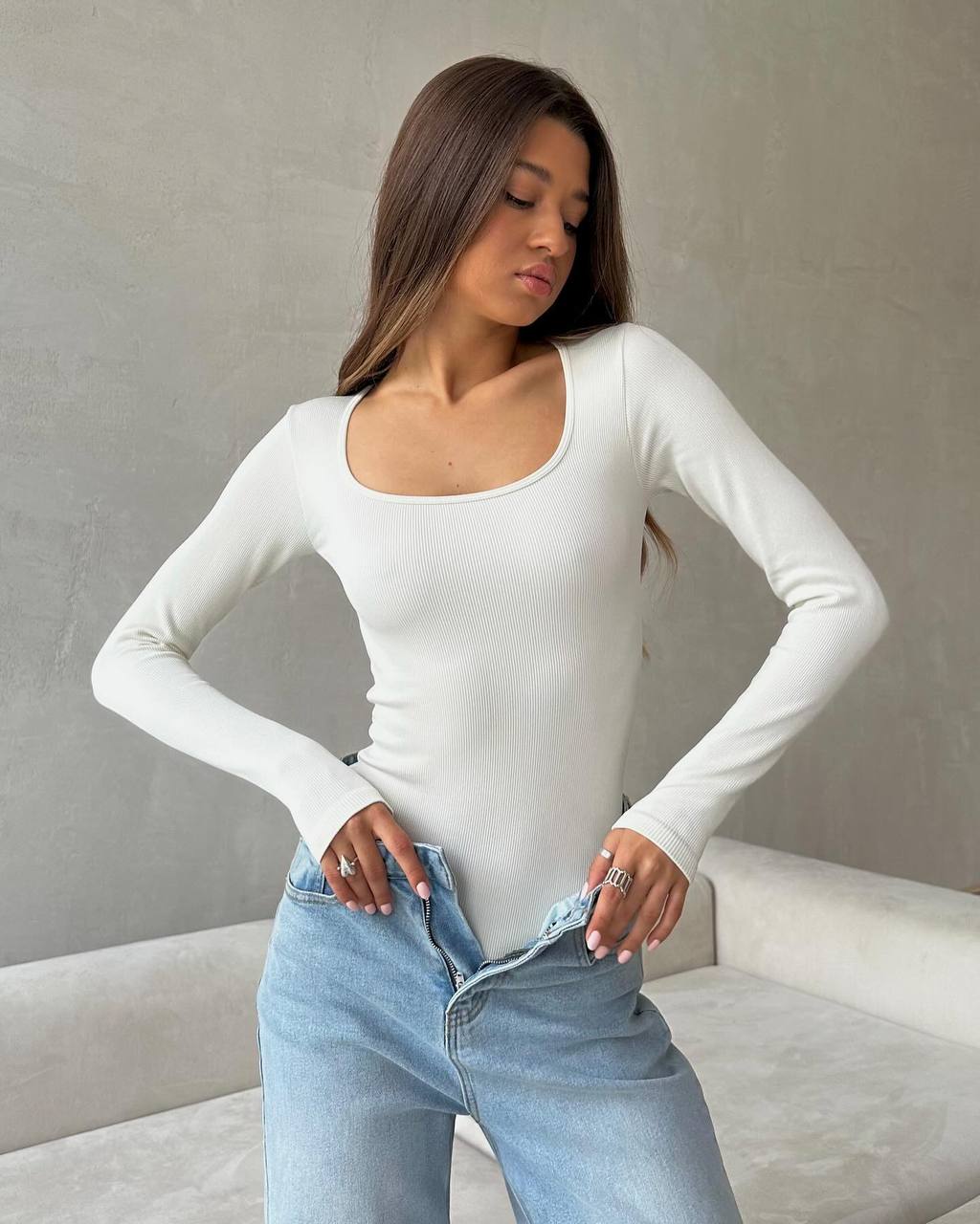 Базовый боди с длинным рукавом на кнопках снизу. Идеально совмещается с любым низом.