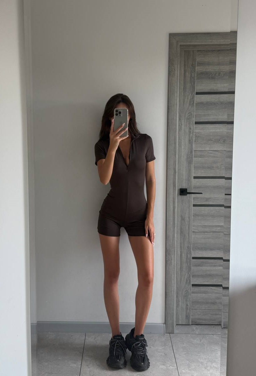 Базовый корректирующий полукомбез с молнией и эффектом утяжки шоколад