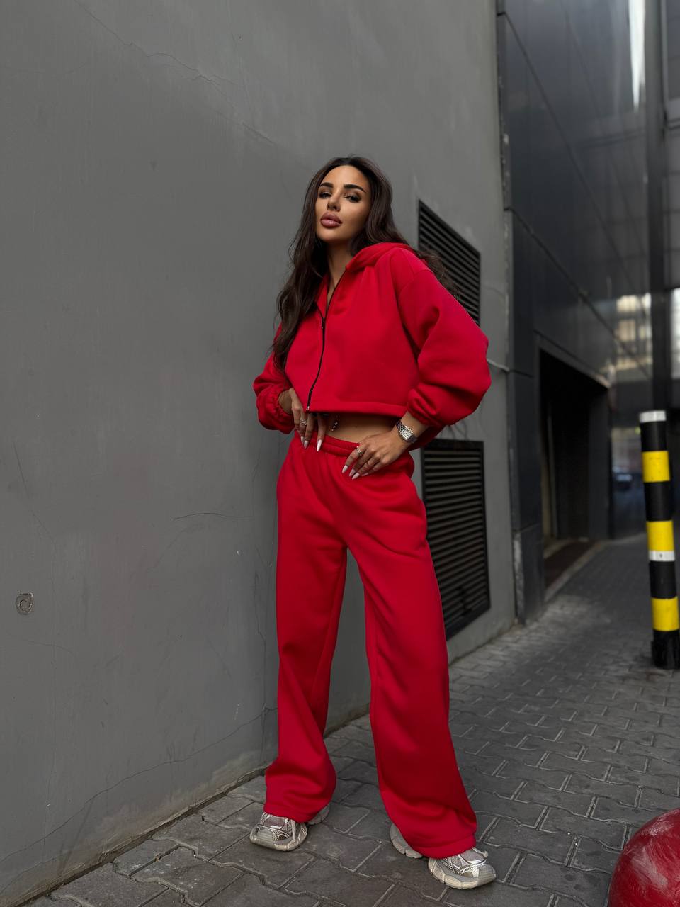 Базовый костюм: Брюки свободного прямого кроя+кофта на затяжках (трехнить на флисе) красный