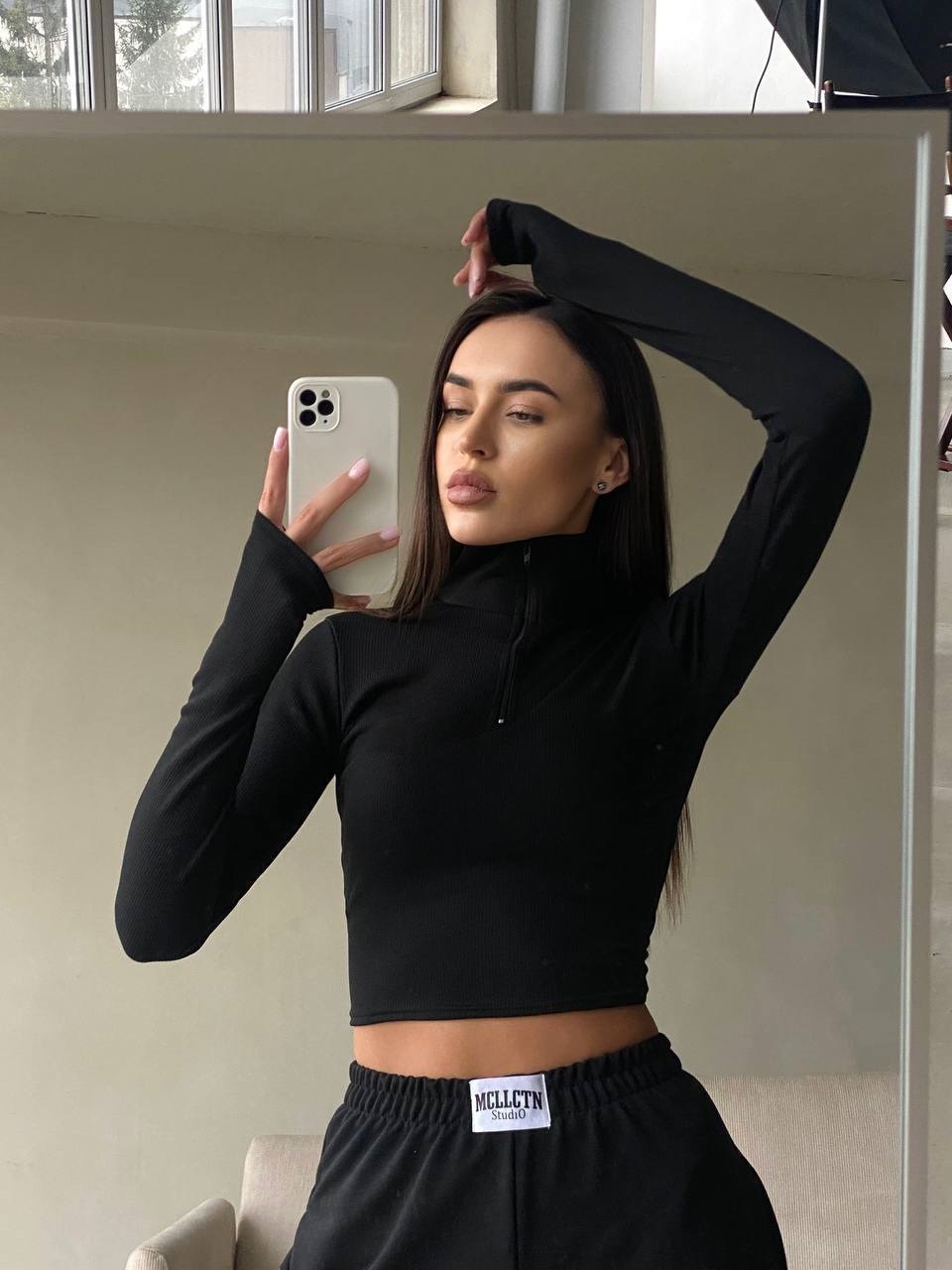 Базовый укроп топ из турецкого рубчика с молнией и вырезами для пальчиков