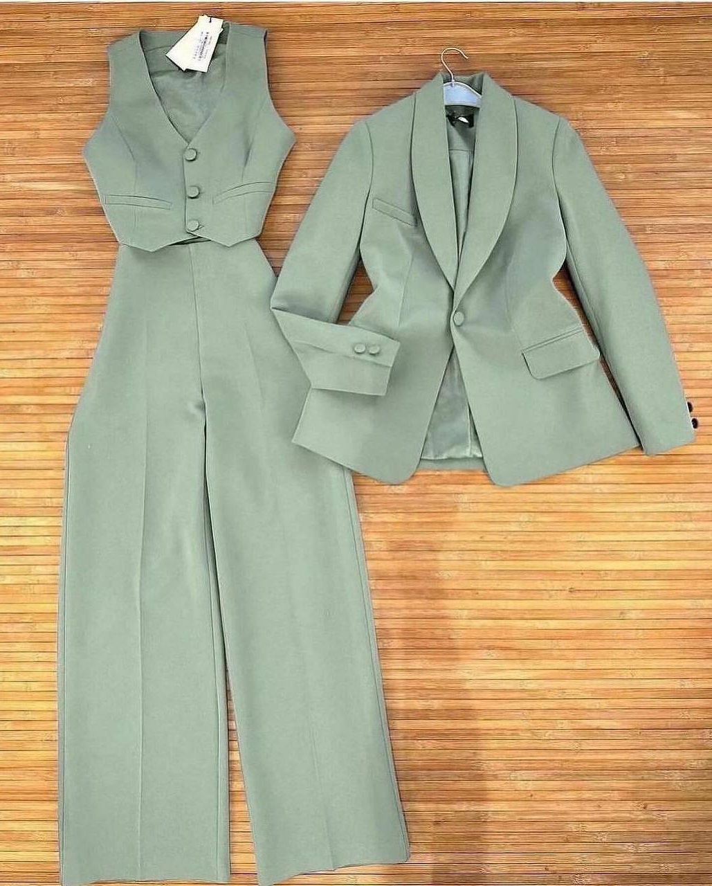 Брюки свободного кроя, жилет и пиджак хорошо садится по фигуре и подчеркивают преимущества ☺️