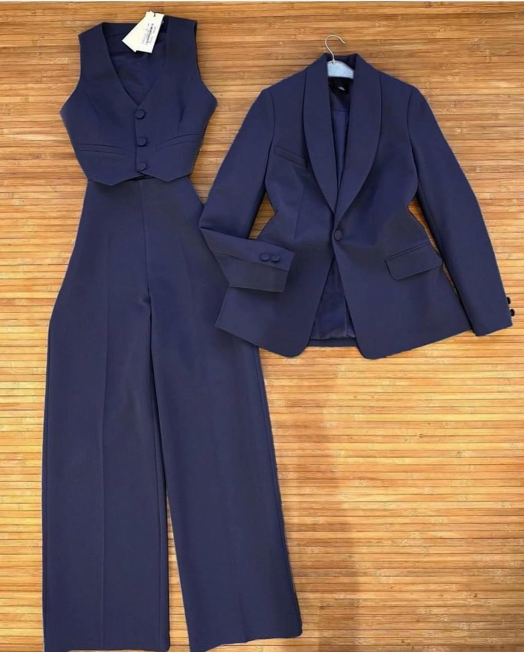 Будьте первым, кто оставил отзыв на “Брючный костюм тройка (жилетка+свободные брюки+пиджак) костюмка темно-синий”