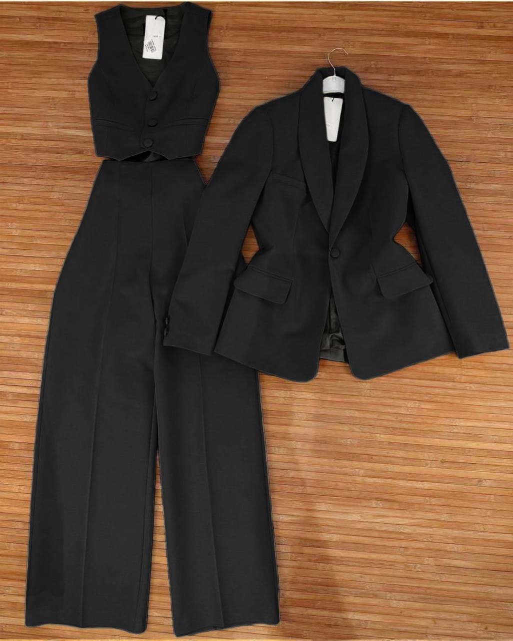 Брюки свободного кроя, жилет и пиджак хорошо садится по фигуре и подчеркивают преимущества ☺️