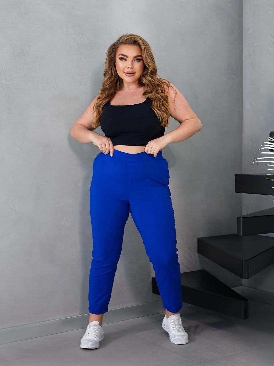 Брюки из стрейчевого коттона зауженные длиной 7/8 электрик