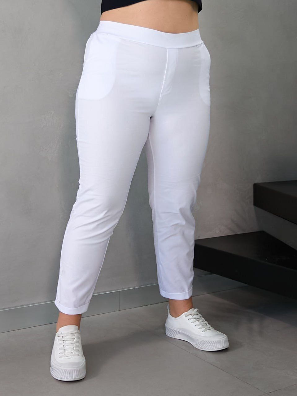 Брюки из стрейчевого коттона зауженные длиной 7/8 белый