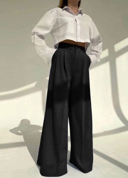 Скорректировать фигуру, отметив талию, можно за счет завышенных штанов. Это может