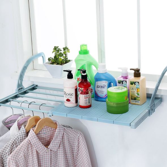 Складная балконная полка Multi-functional Balcony Shelf с регулируемой высотой сушилки для обуви – это очень удобная в хозяйстве вещь. Летом её можно поместить на балконе или лоджии, а зимой возле батареи и быстро высушить все вещи. Если у вас частный дом, то без складной компактной сушилки также не обойтись, вы сможете установить ее лишь по необходимости, ведь натянутые веревки между деревьями с бесконечными рядами стирки имеют не очень опрятный вид и портят панораму дворика.