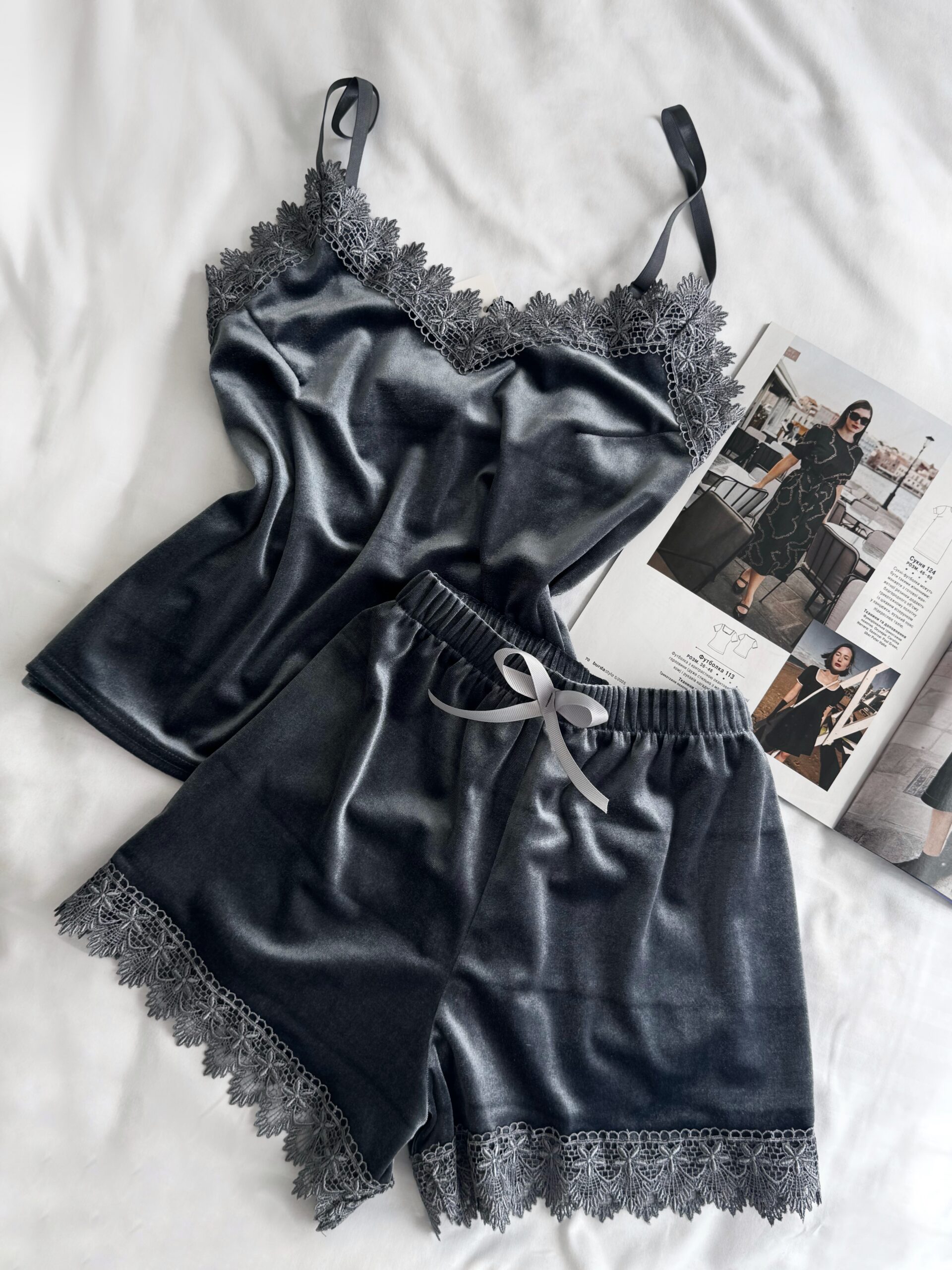 Домашний комплект-пижама: майка и шорты (велюр) графит