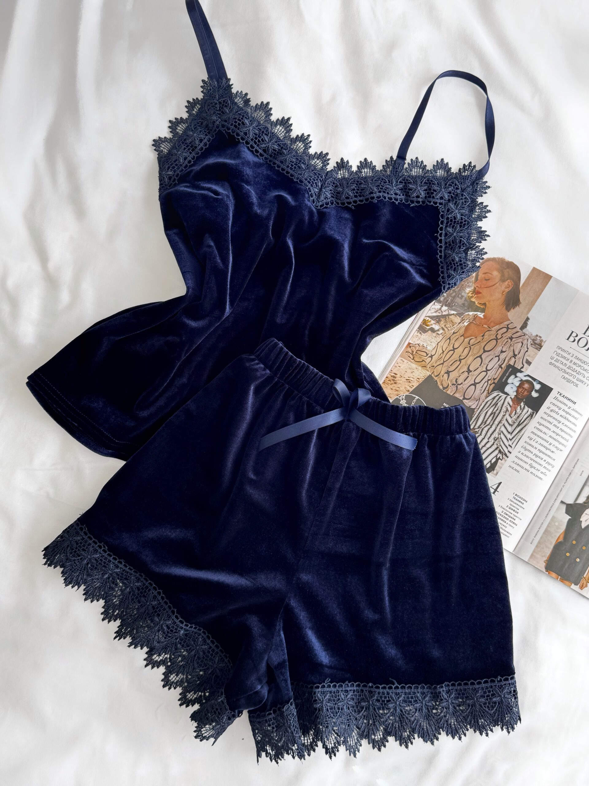 Домашний комплект-пижама: майка и шорты (велюр) темно-синий