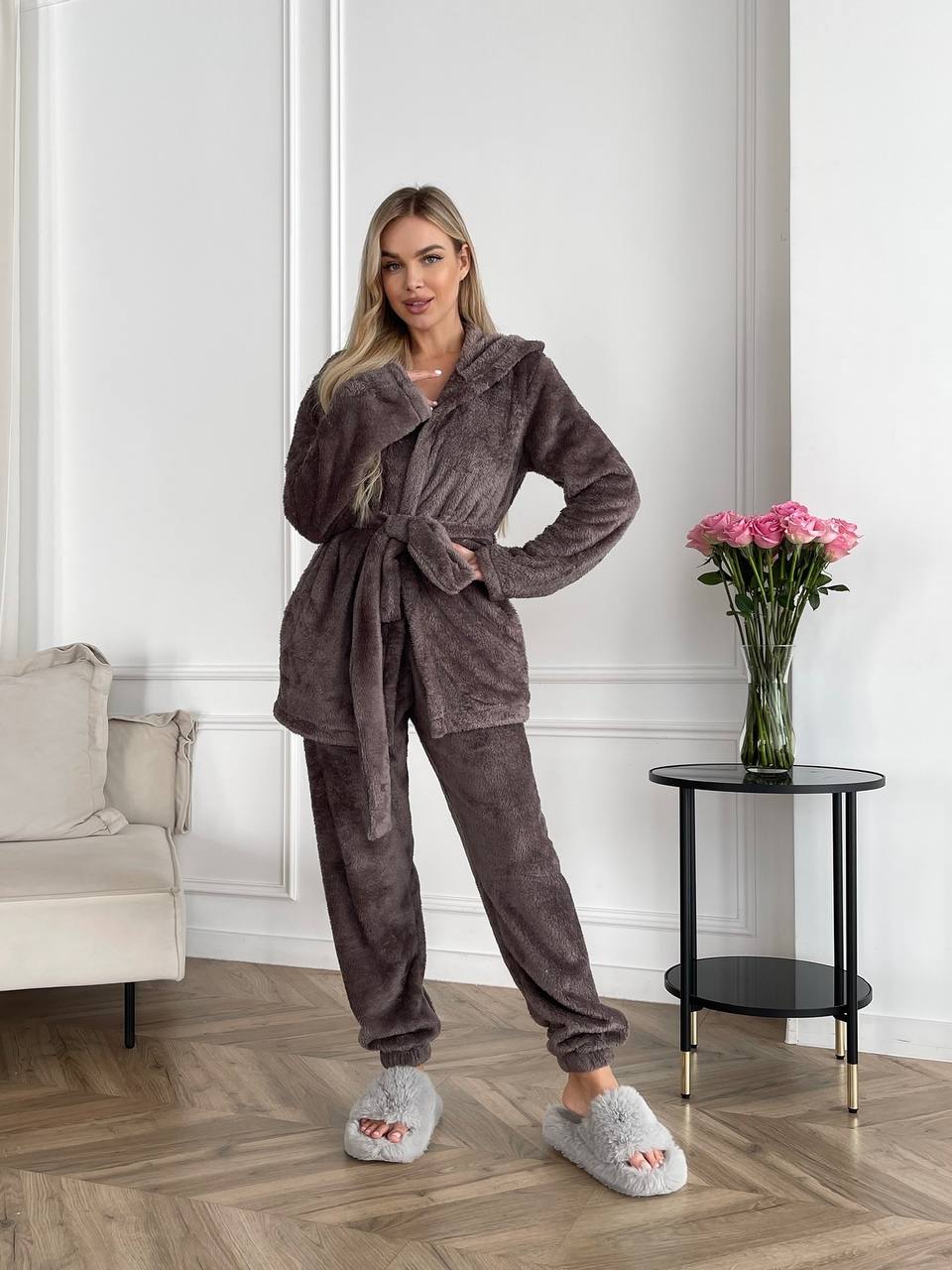 Домашний махровый костюм-тройка (халат+топ+штаны) мокко