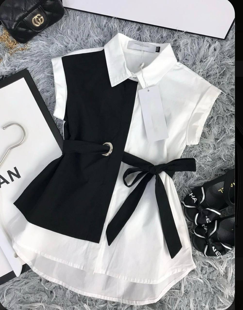 Головна » Магазин » ОДЕЖДА » ПИДЖАКИ РУБАШКИ » Двухцветная блуза с поясом белый с черным