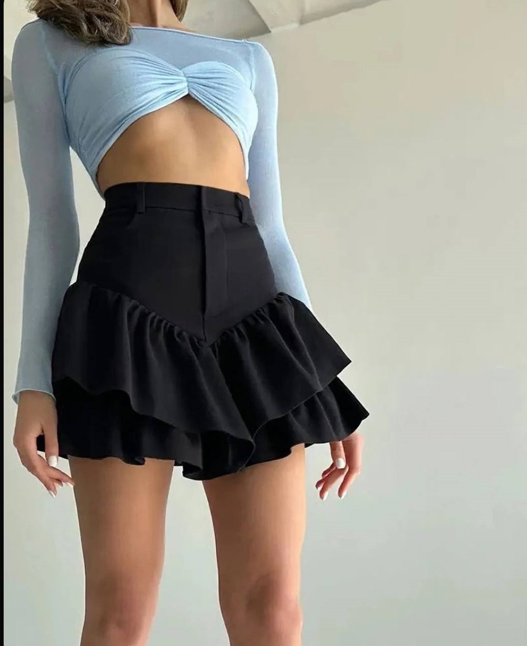 Головна » Магазин » ОДЕЖДА » ЮБКИ ШОРТЫ » Джинсовая юбка-шорты с воланом черный