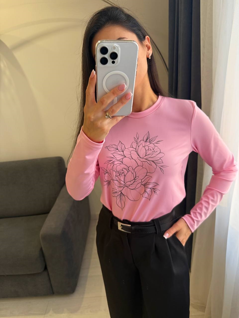 Эластичная футболка из микродайвинга с принтом РОЗЫ розовый
