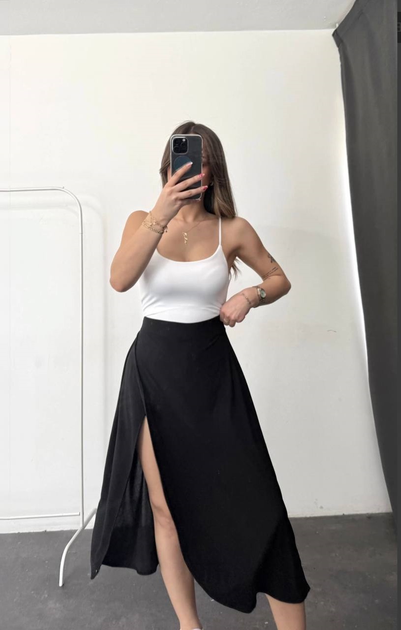 Головна » Магазин » ОДЕЖДА » ЮБКИ ШОРТЫ » Эластичная Юбка с шортиками расклешенная с разрезом черный