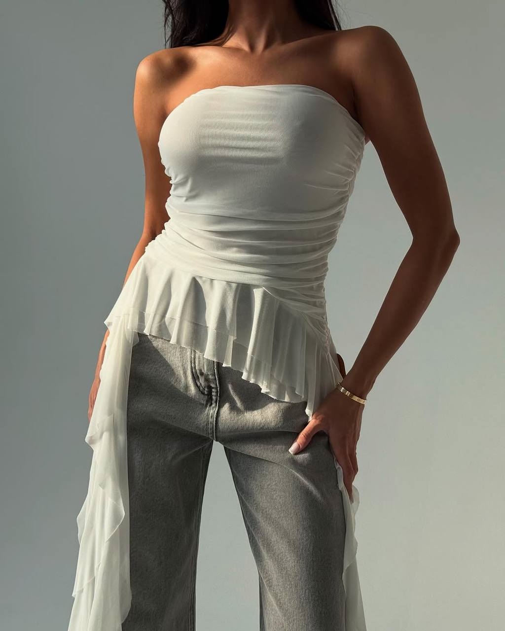 Головна » Магазин » ОДЕЖДА » БЛУЗЫ ТОП БОДИ КОРСЕТЫ » Эластичный женственный топ с воланами белый