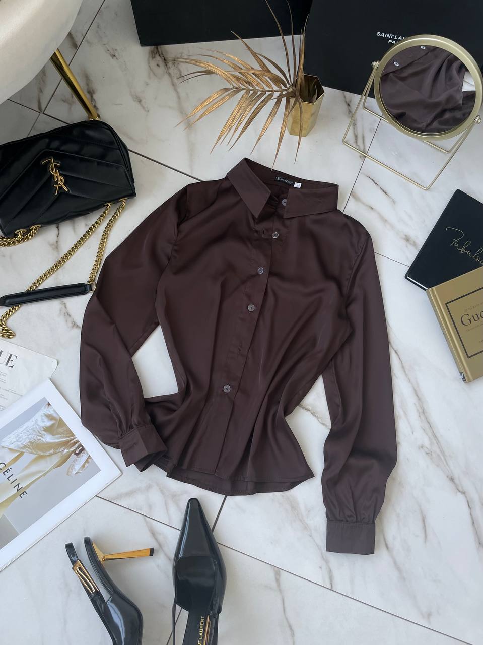 Элегантная рубашка с длинными рукавами с манжетами шоколад
