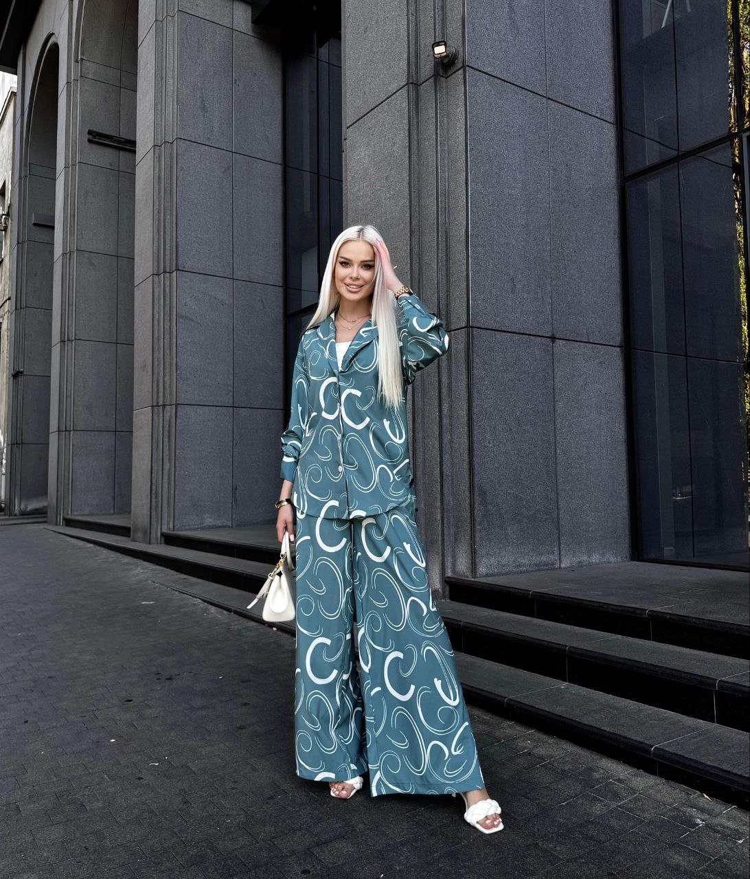 ЭЛЕГАНТНЫЙ И ЛЕГКИЙ КОСТЮМ рубашка+свободные штаны морская волна
