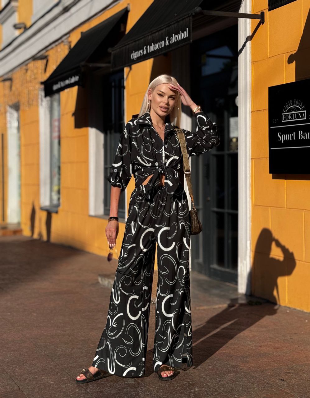 ЭЛЕГАНТНЫЙ И ЛЕГКИЙ КОСТЮМ рубашка+свободные штаны черный
