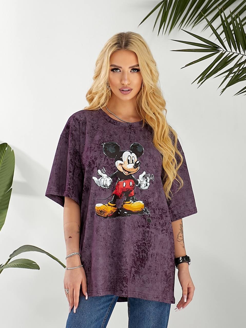Футболка оверсайз с накатом “Mikki” коттон варенка сливовый