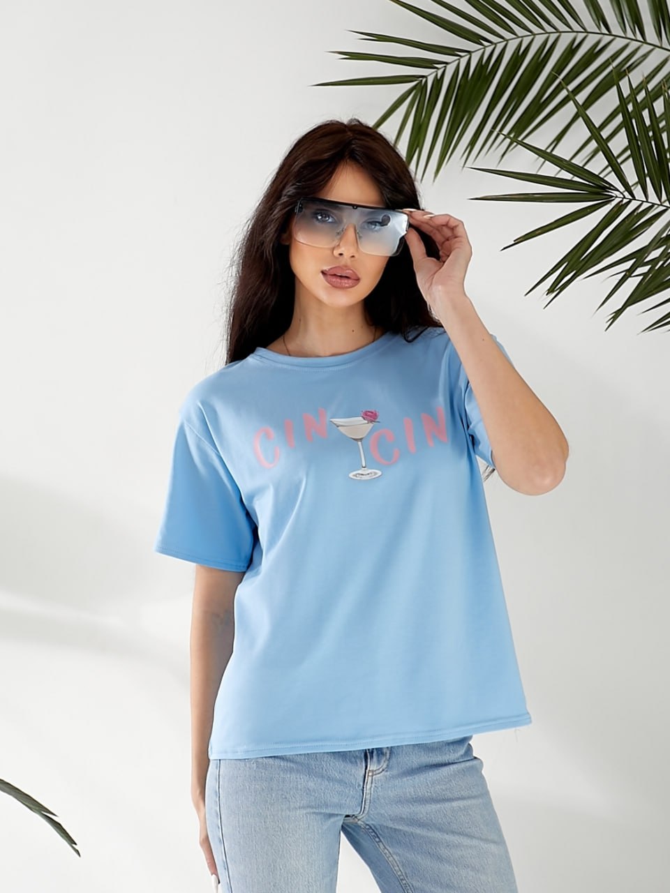 Футболка с коктейльным настроением «Cin Cin» голубой