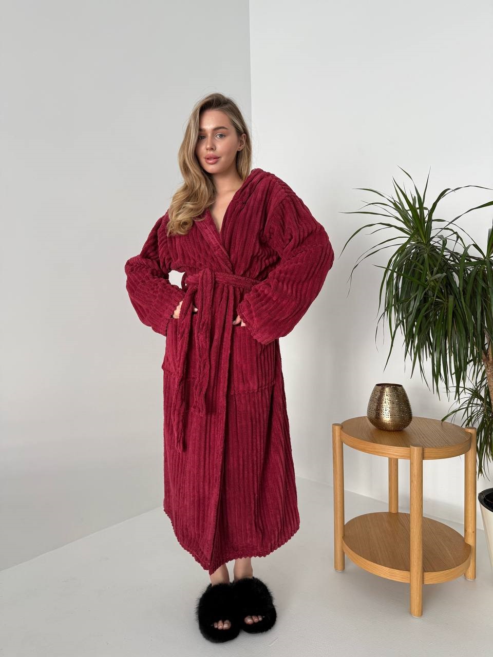 ✨ Халат с капюшоном, широким поясом, позволяющий легко регулировать посадку и глубокими карманами,