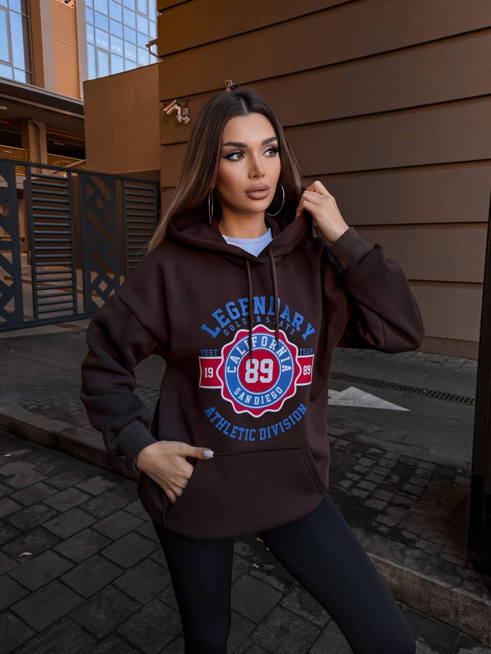 Головна » Магазин » ОДЕЖДА » КОФТЫ ТОЛСТОВКИ ХУДИ СВИТЕРА » Худи оверсайз с капюшоном+карман-кенгуру (Тринитка на флисе) шоколад