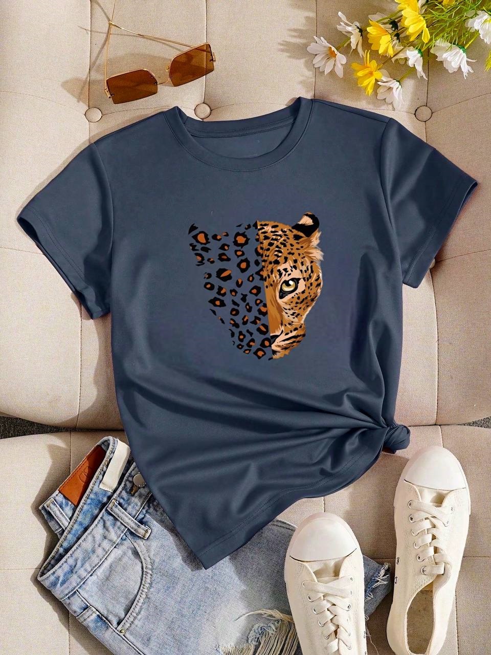 Идеальная футболка на лето с ярким накатом ТИГР серый (графит)