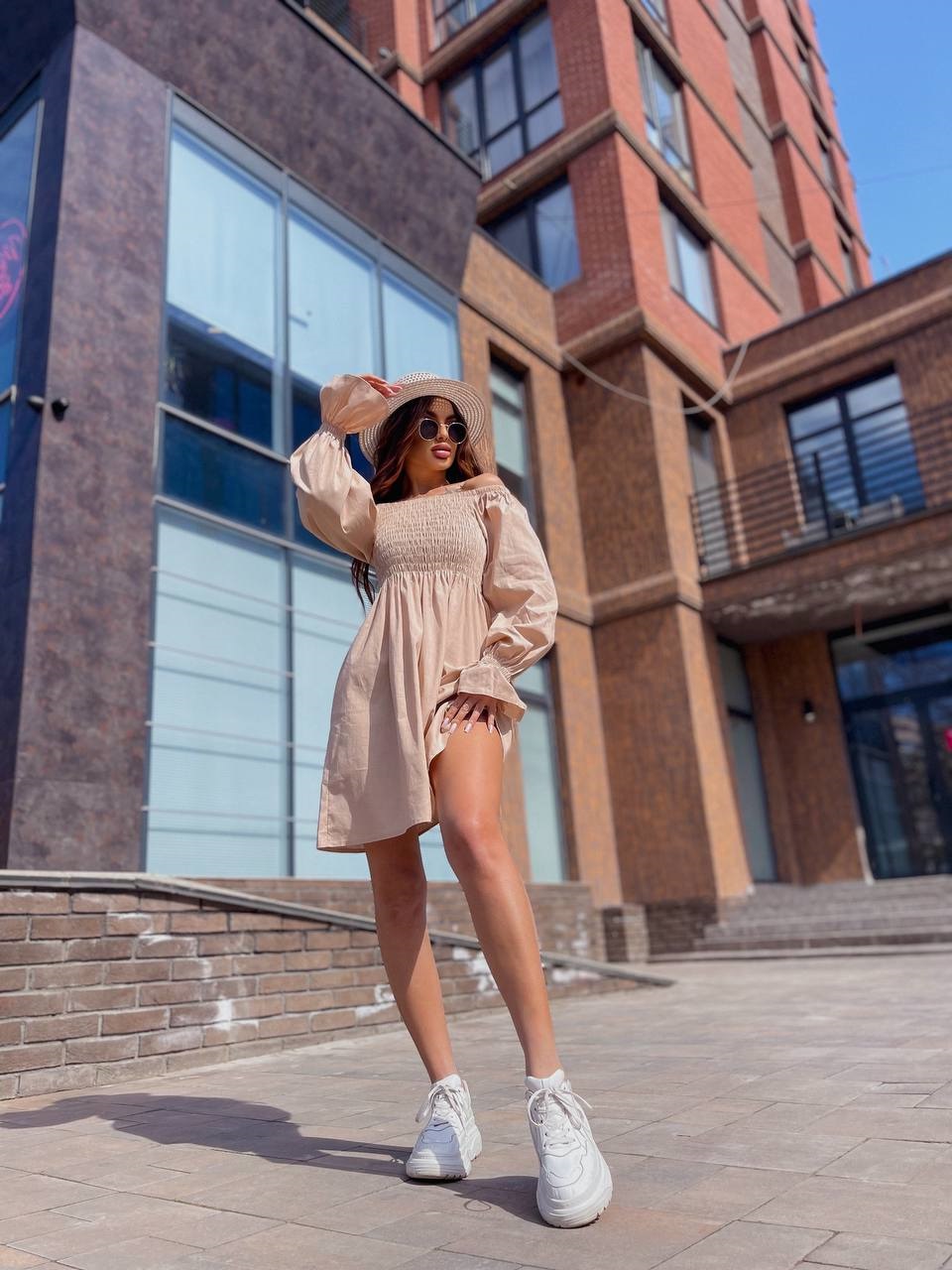 Головна » Магазин » ОДЕЖДА » ПЛАТЬЯ ТУНИКИ САРАФАНЫ » Идеальное платье с пышными рукавами по груди резинка бежевый