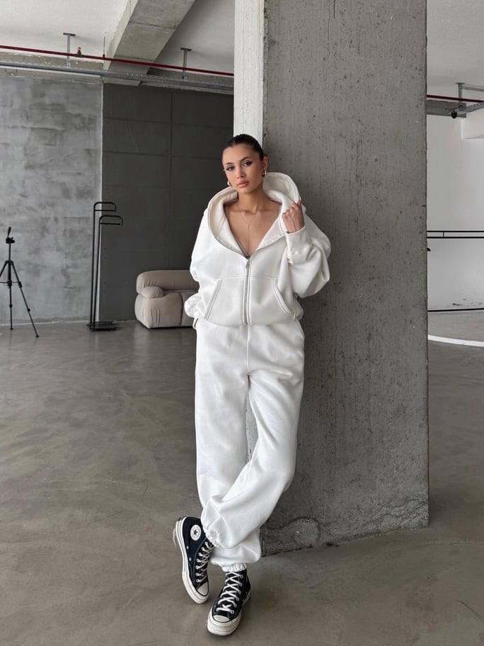 Классический спортивный костюм: Объемное худи + джоггеры (трехнить на флисе) молоко