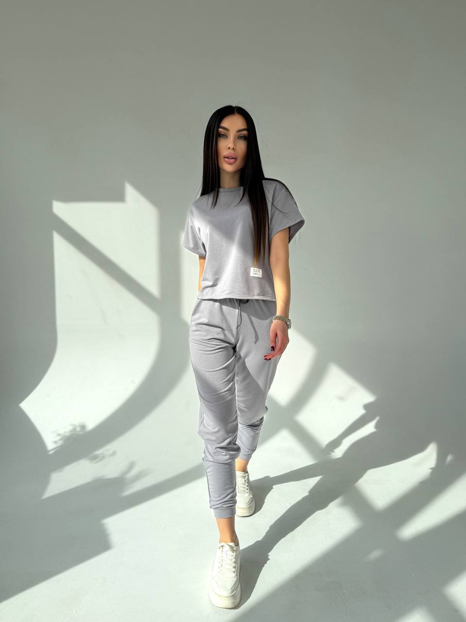 Классный костюм (укороченная футболка с коротким рукавом+джоггеры) двухнитка серый