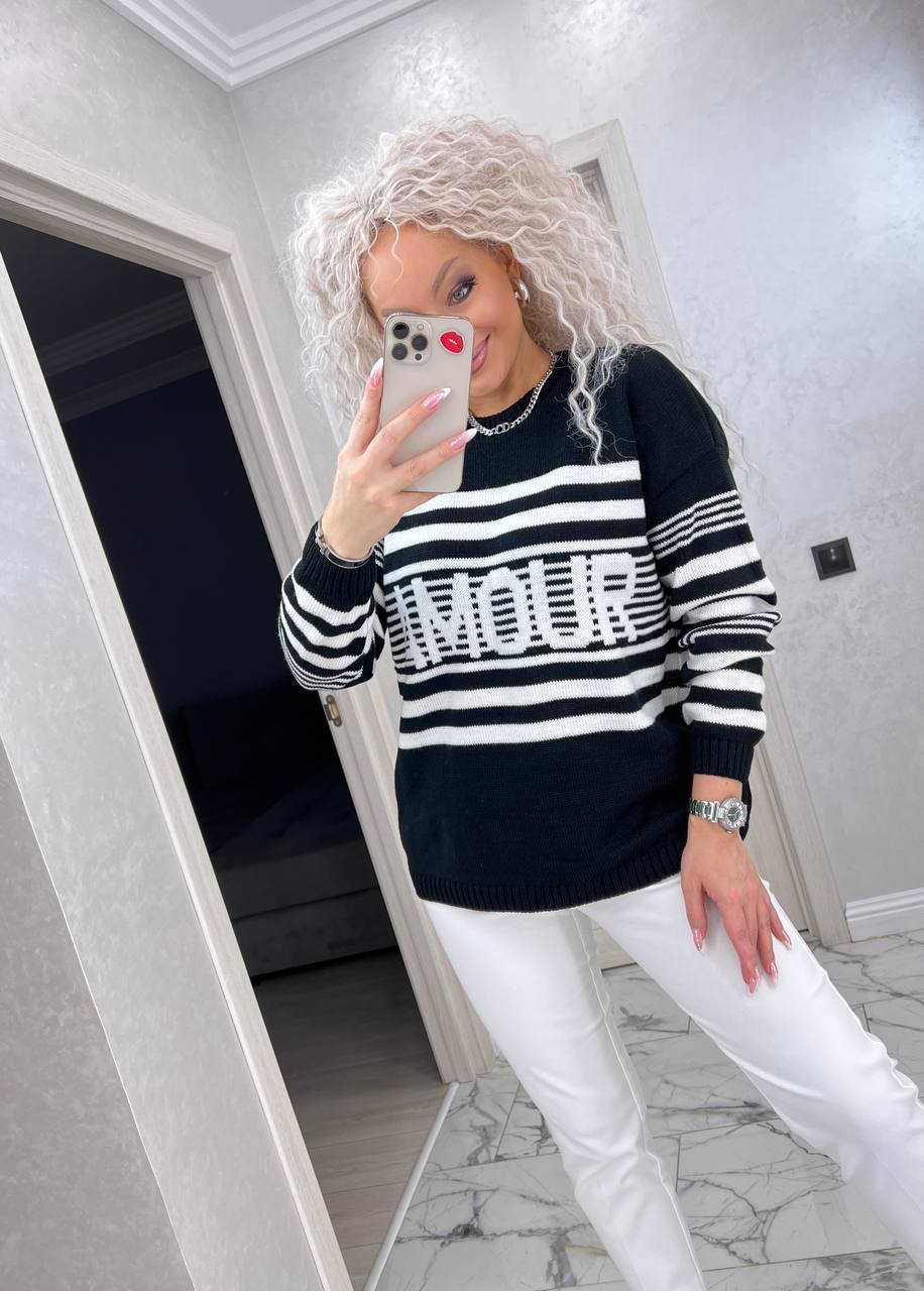 Головна » Магазин » ОДЕЖДА » КОФТЫ ТОЛСТОВКИ ХУДИ СВИТЕРА » Классный вязанный свитерок Amour черный