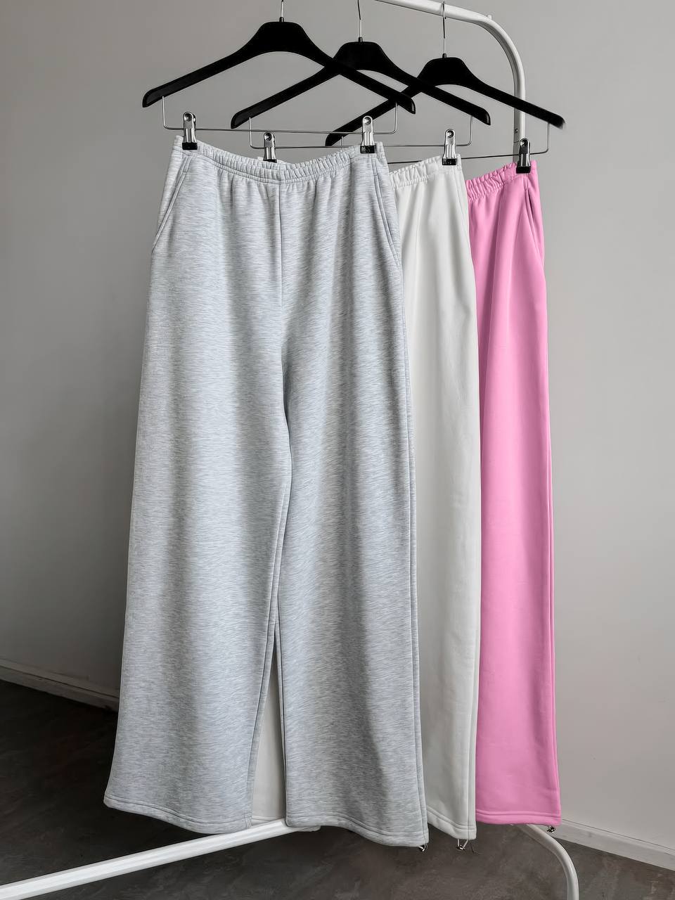 Комфортные штаны свободного кроя, – низ штанов на затяжках.