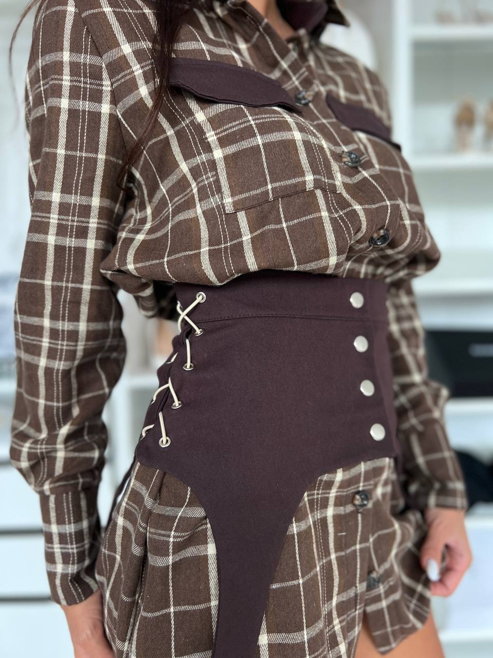 Удлиненная рубашка в клетку + баска — корсет из джинса ❤️