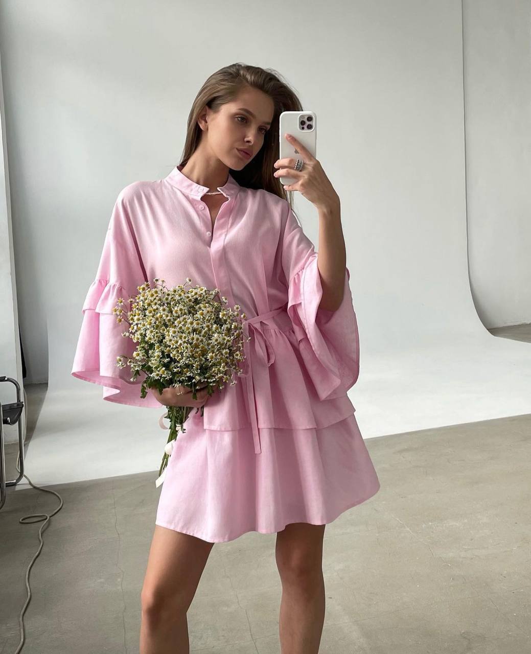 Головна » Магазин » ОДЕЖДА » ПЛАТЬЯ ТУНИКИ САРАФАНЫ » Короткое женственное платье с поясом (лен) розовый