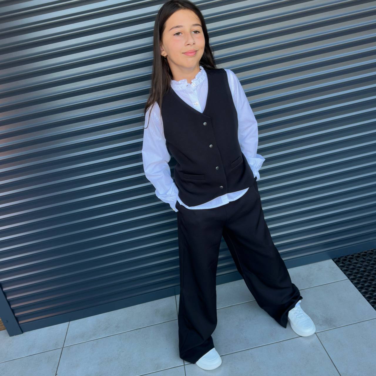 Костюм для девочек двойка: штаны палаццо+жилет черный