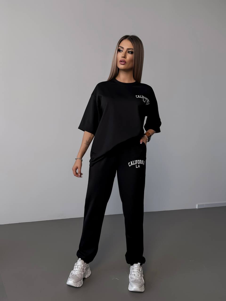 Костюм двойка «California» футболка со спущенным рукавом+штаны с затяжкой черный