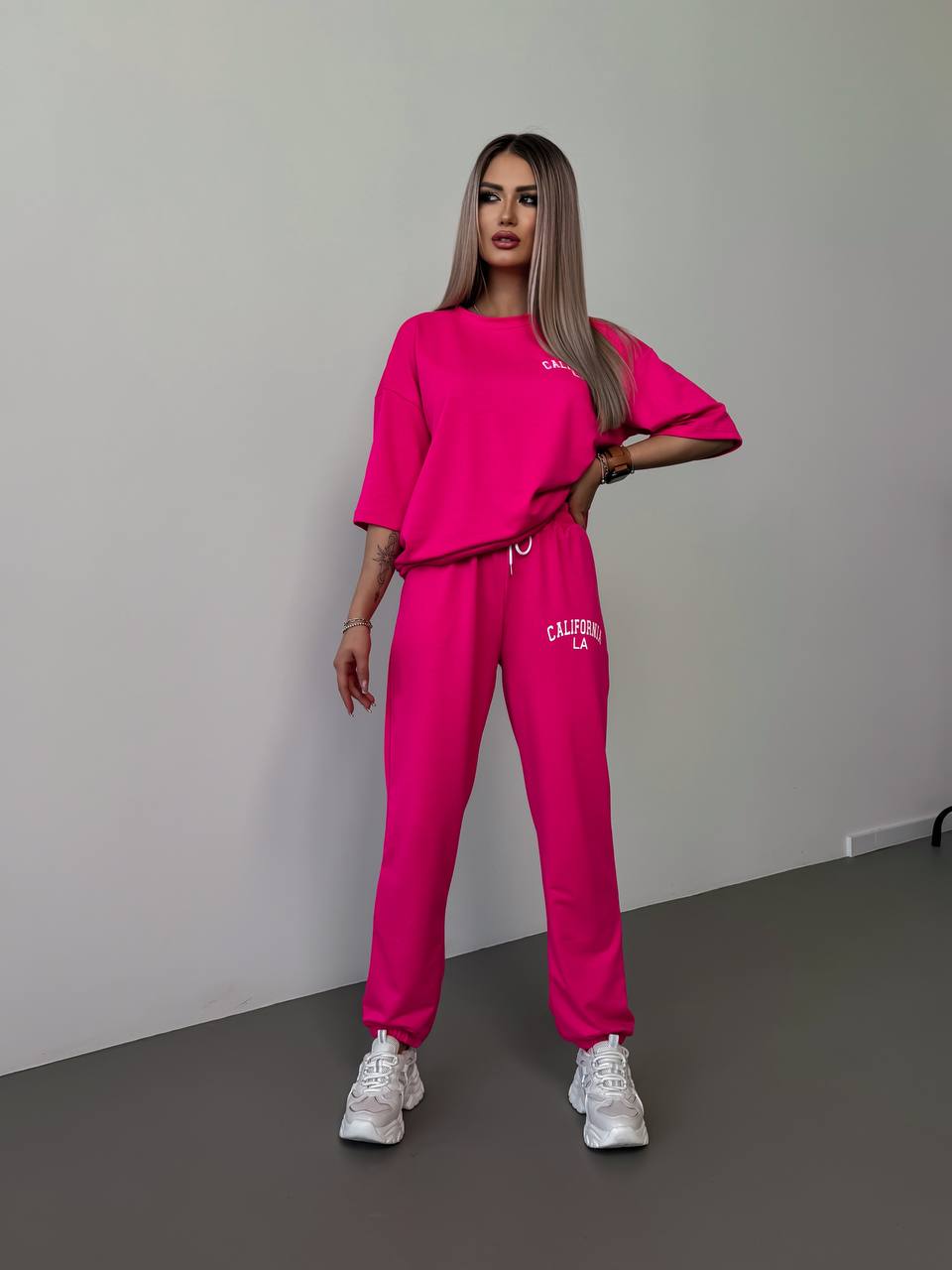 Костюм двойка «California» футболка со спущенным рукавом+штаны с затяжкой малина