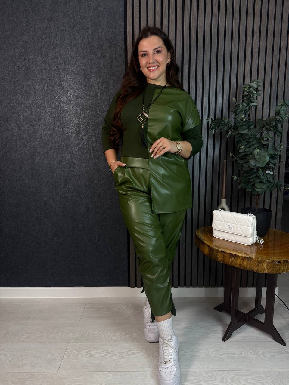 ▫️Стильный костюм-двойка выполнен из двунитки и экокожи, которая не будет обидеть после стирки