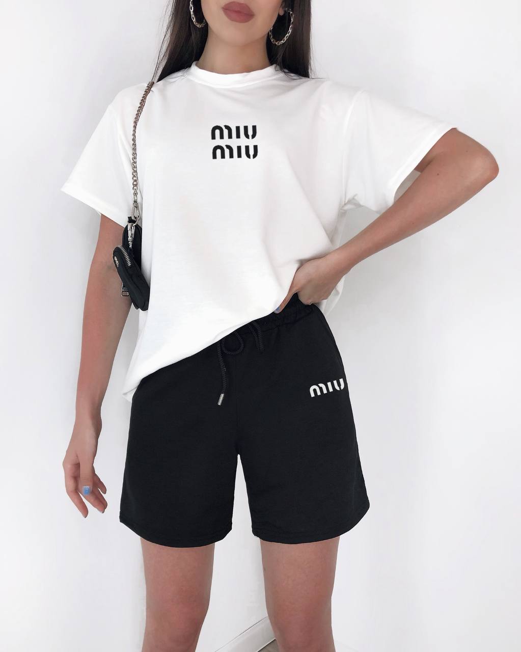 Костюм двухнитка (футболка и шорты с накаткой) белый+черный
