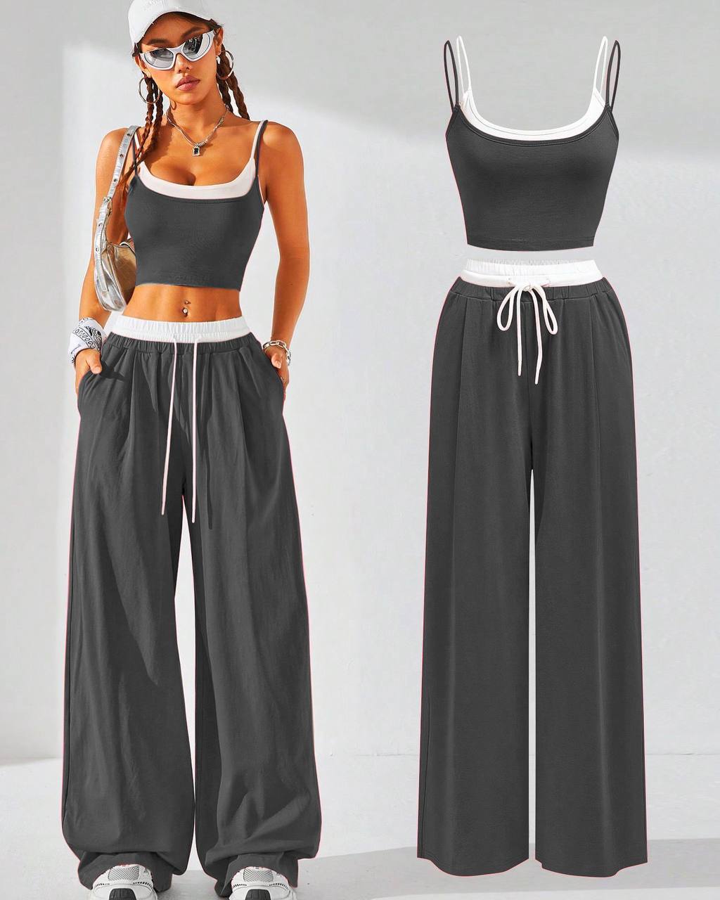 Костюм: двухслойный топ + палаццо (двухнить) графит