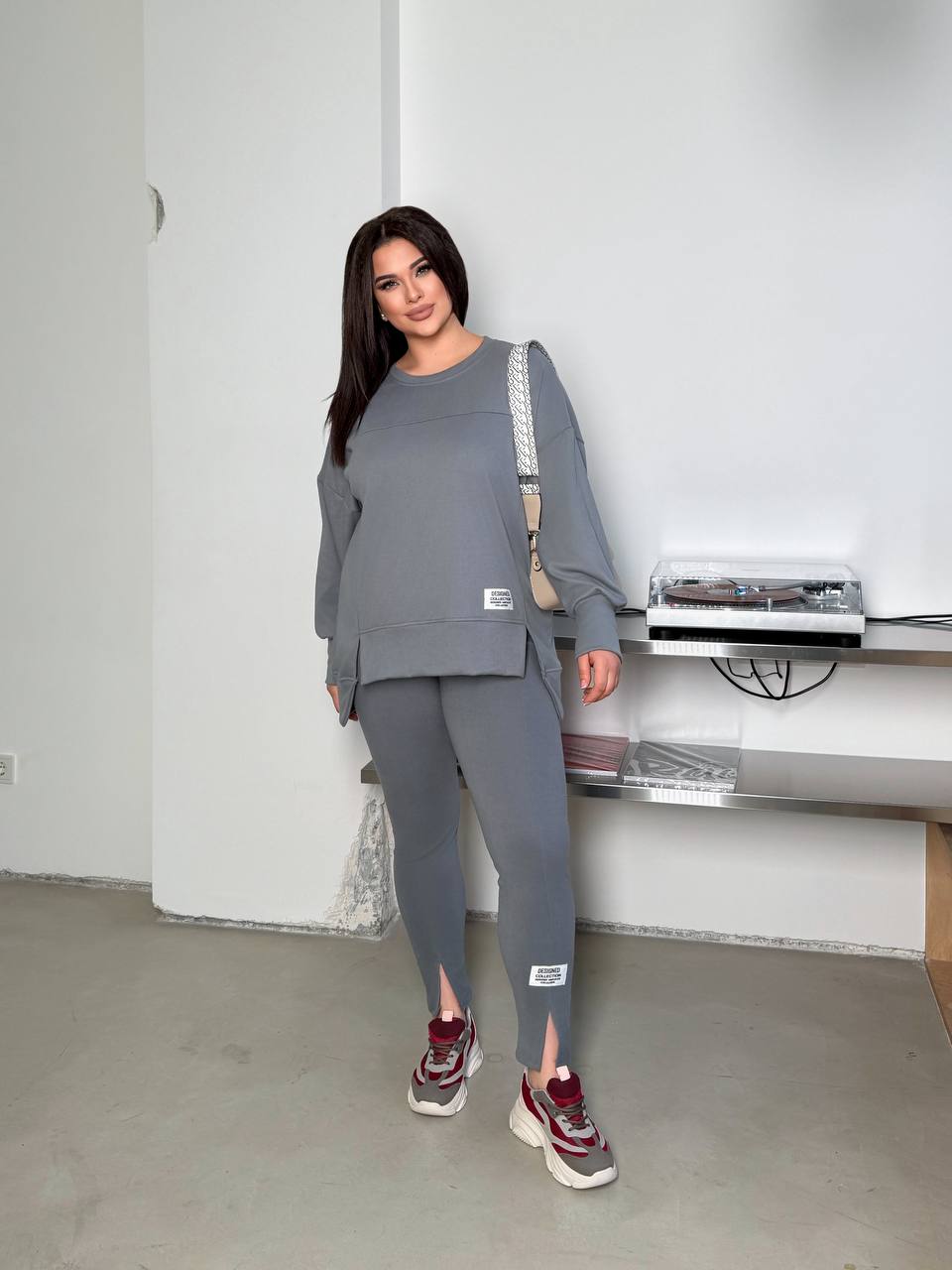 Головна » Магазин » ОДЕЖДА » ЖЕНСКИЕ СПОРТИВНЫЕ КОСТЮМЫ » Костюм (худи с манжетой по низу и разрезами+леггинсы с разрезами) серый