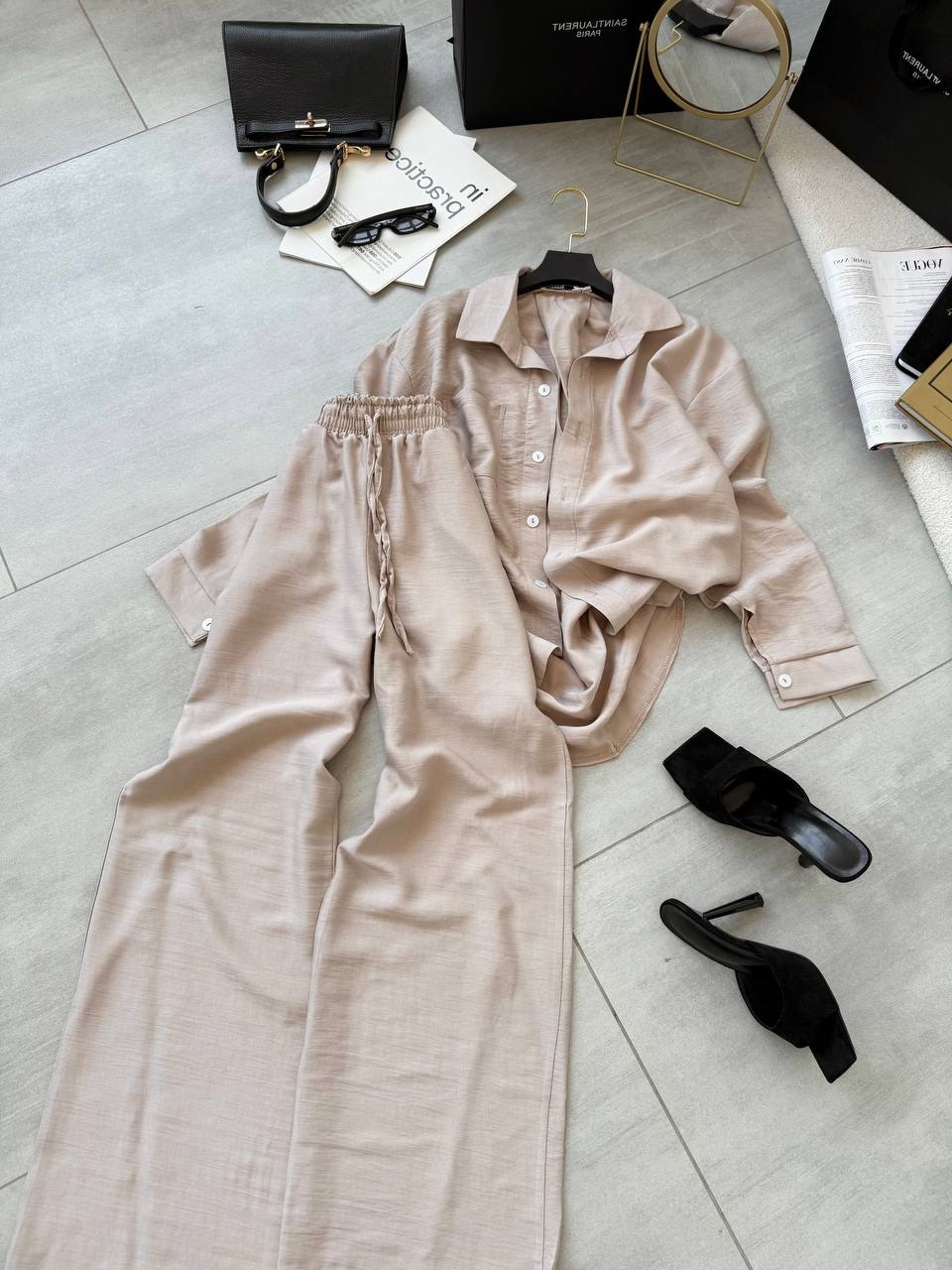 Костюм льняной свободного кроя (рубашка и брюки) мокко
