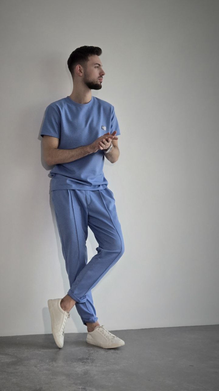 Костюм мужской: Футболка с фактурной текстурой+брюки с боковыми карманами джинс