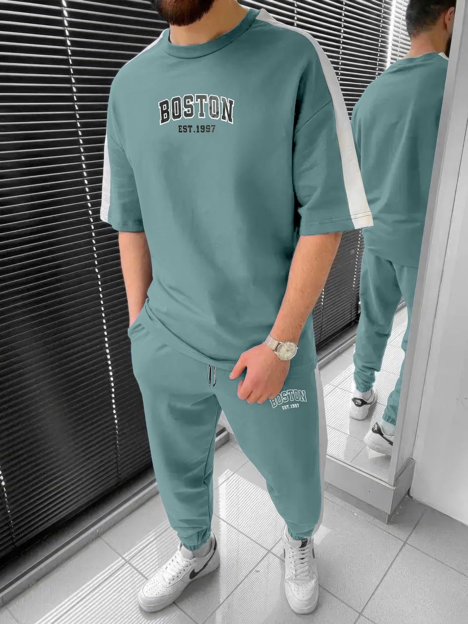 Костюм мужской: Футболка с принтом на груди+штаны с шнурком олива